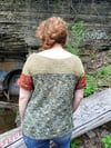 I used Snowdrift Sport from The Frosted Stitch for both my long sleeve and my short sleeve versions. Yardage is based off of the long sleeve version with the back just slightly longer than the front. If you make the sleeves a different size from the body or make short sleeves this will affect your yardage below.