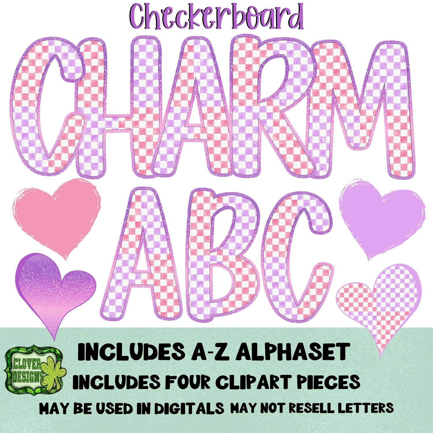 Checkerboard Charm Alphaset Pngs plus 4 clipart pngs included