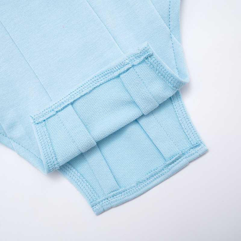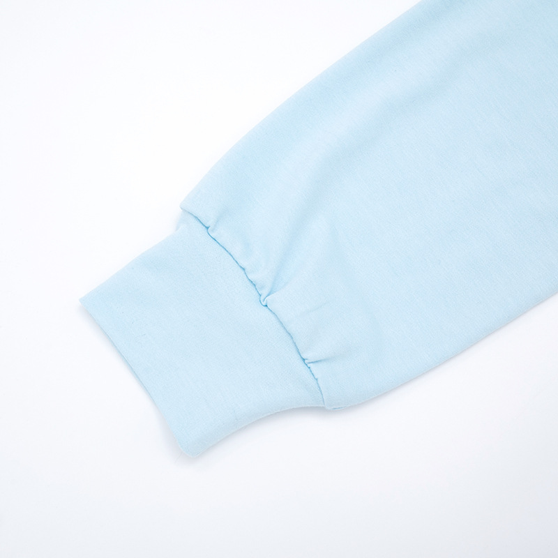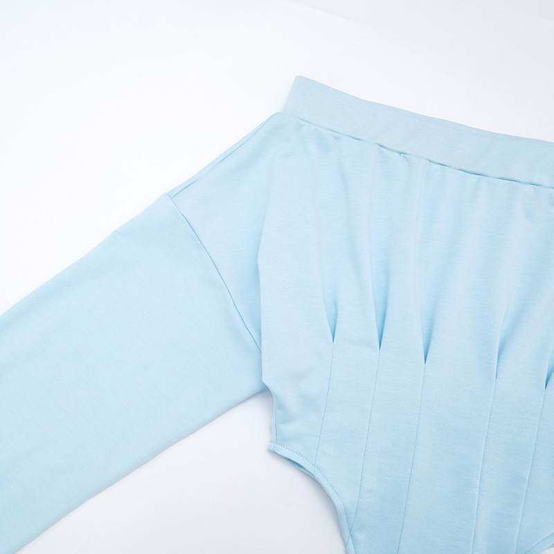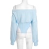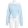 Niche indie designer blue court-style waist-cinching off-shoulder longsleeve T-shirt