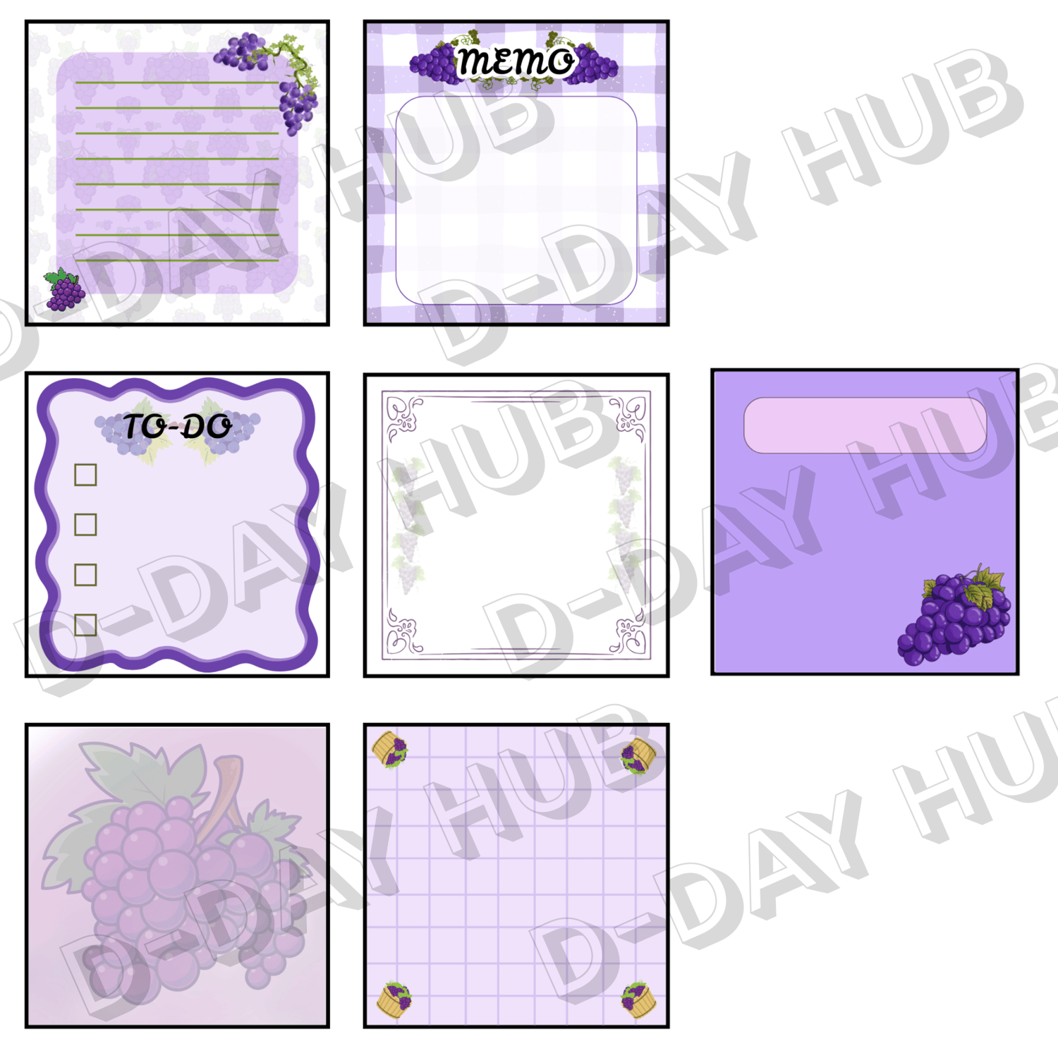 Stay organized with a touch of fun using our Purple Grape Memo Pad. This digital product includes two pages with a total of seven different memo sheets, each featuring a unique design centered around sweet, juicy grapes. Perfect for quick notes, daily reminders, and adding a pop of personality to your digital planner or journal.