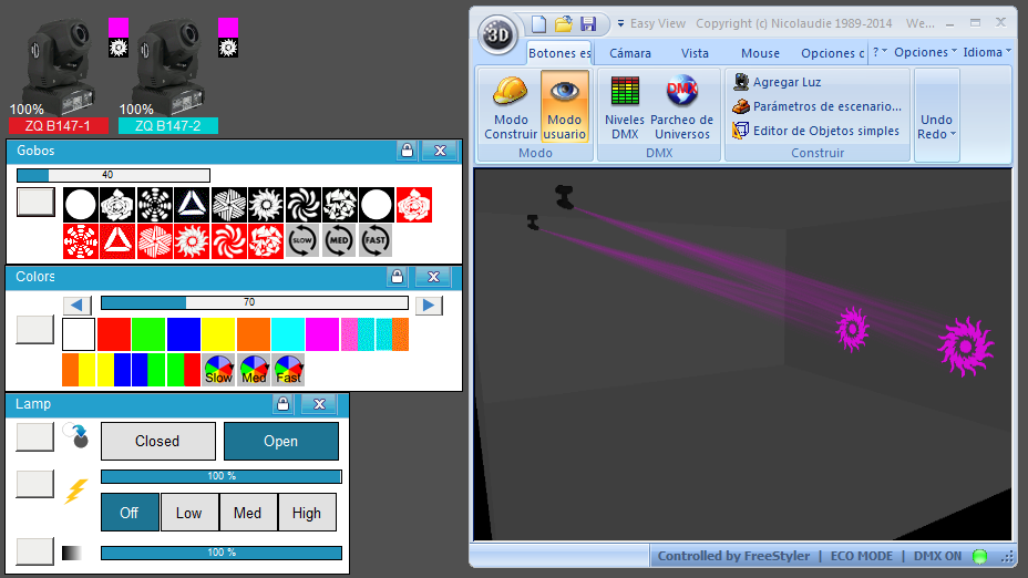 Esta Librería SSL2 está optimizada para trabajar con Magic 3d Easy View. Es decir para ver una representación 3D de las secuencias que estemos realizando con Freestyler, QLC+ o cualquier otro soft que se conecte con Magic 3d.