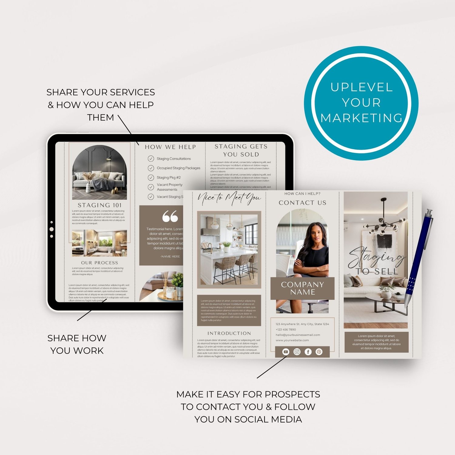Home Staging Brochure Template | Canva Trifold Marketing Template for Home Stagers
