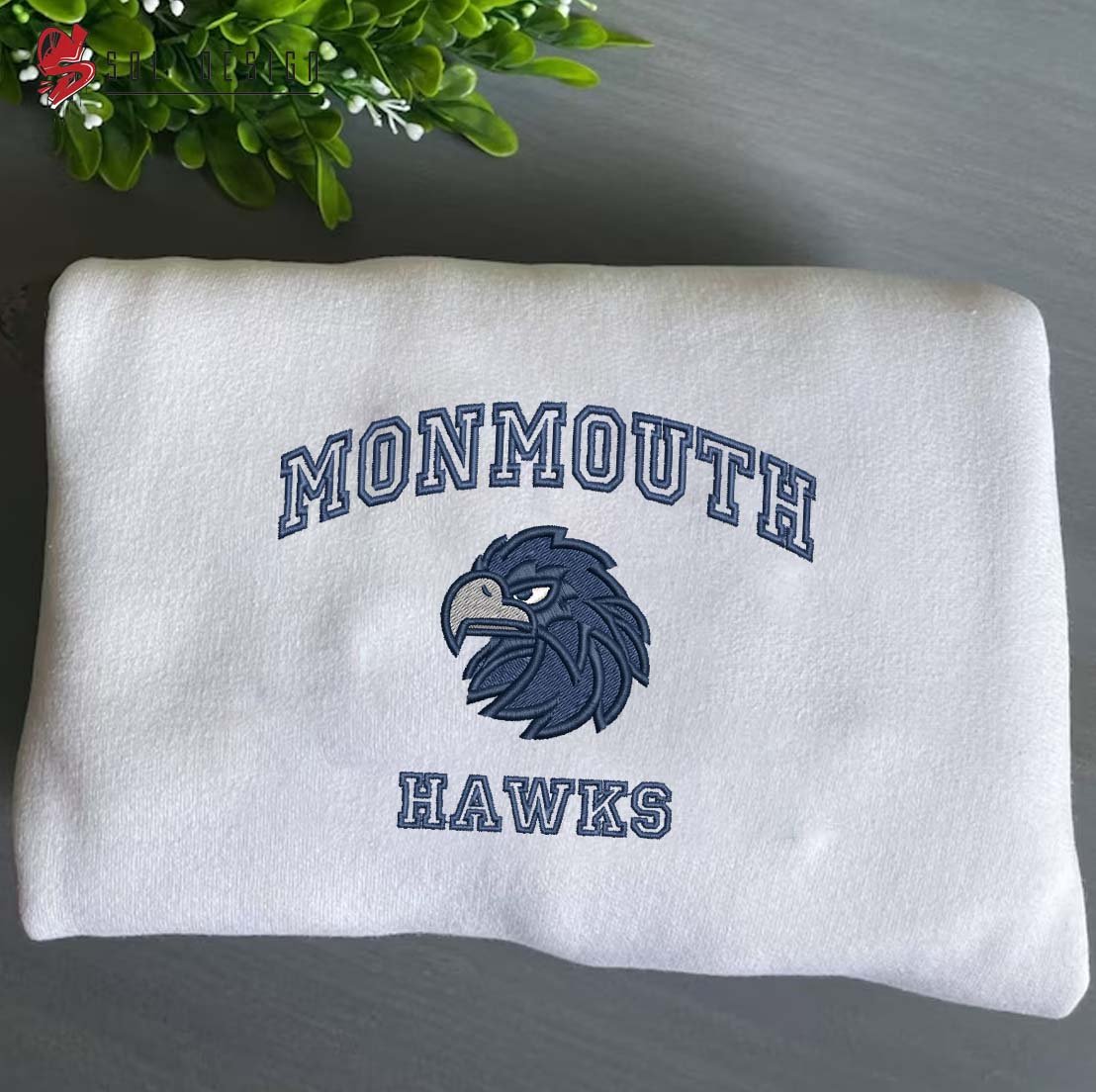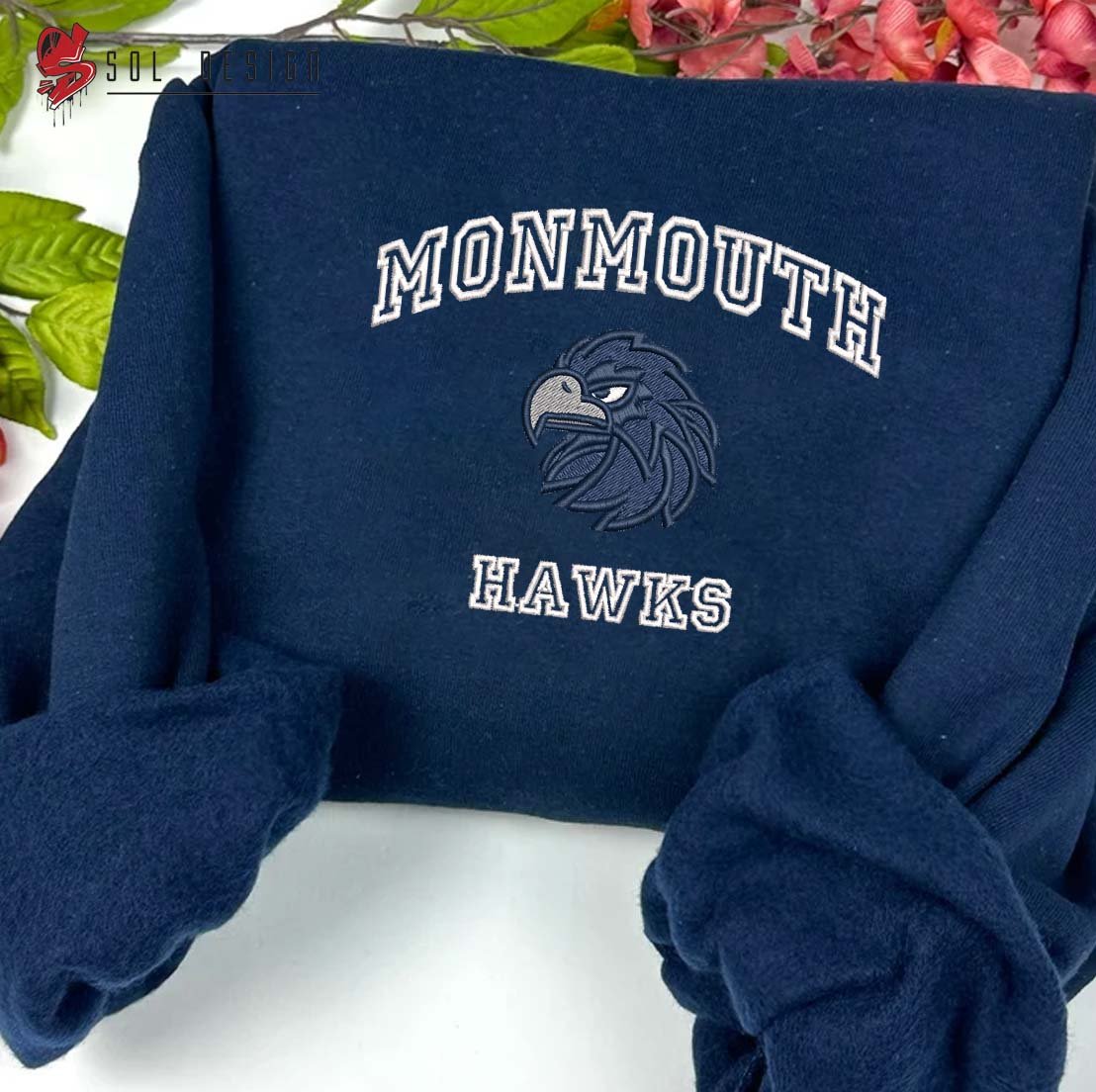 NCAA Monmouth Hawks College Football Team Embroidered Crewneck, Monmouth Football Embroidered Sweatshirt, NCAA Monmouth Hawks Team Sweatshirt, Game Day Embroidered Hoodie, T-shirt