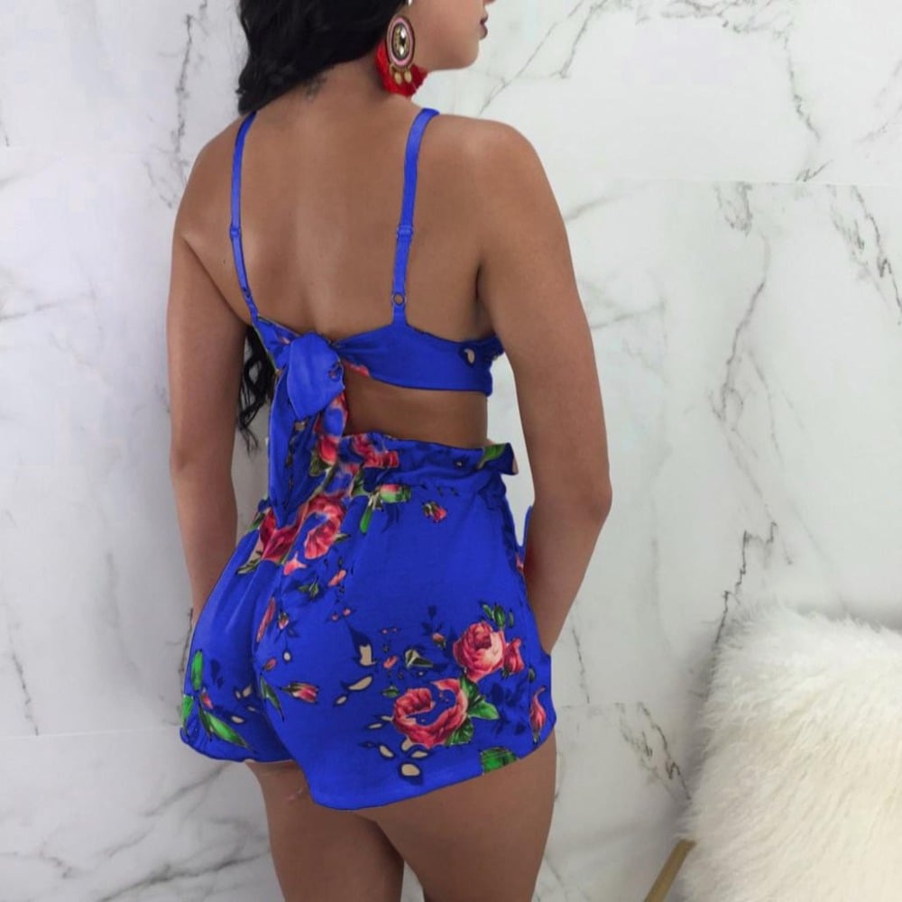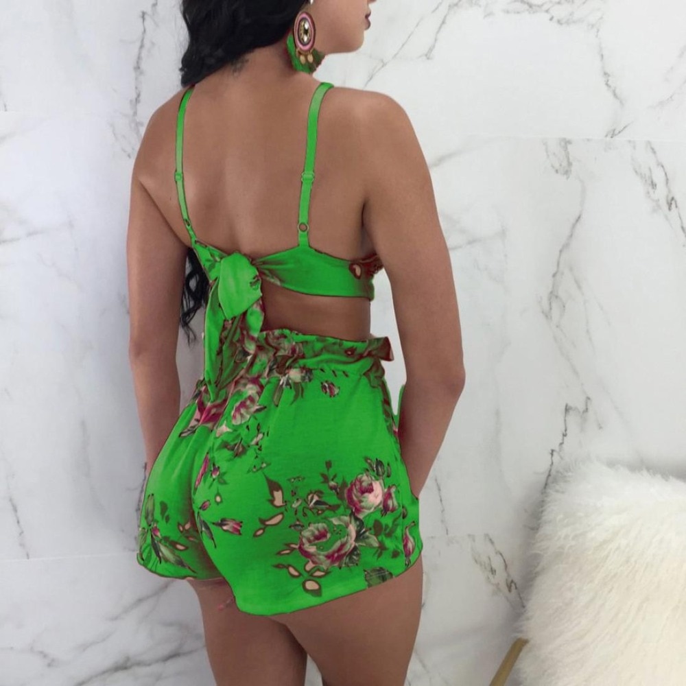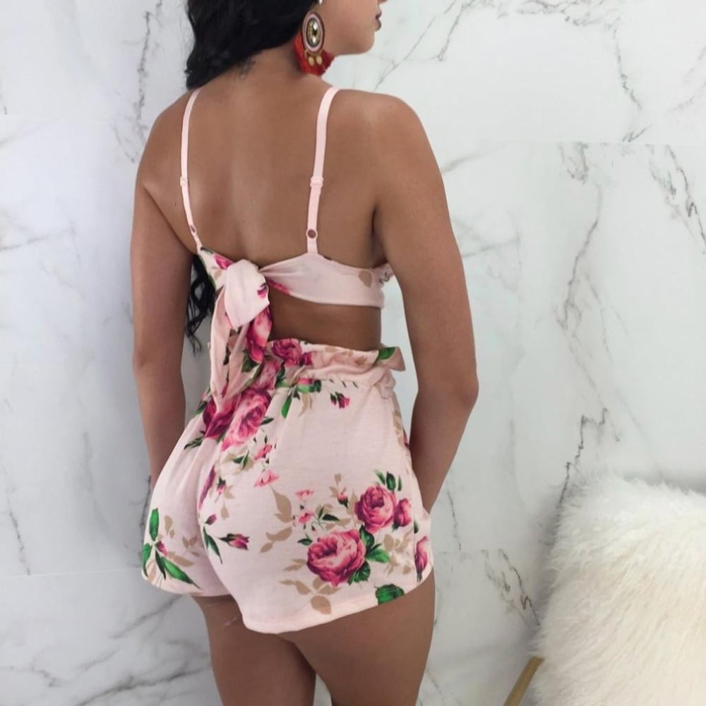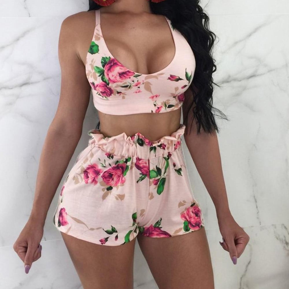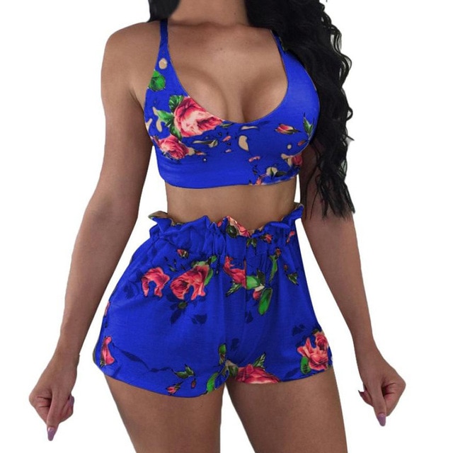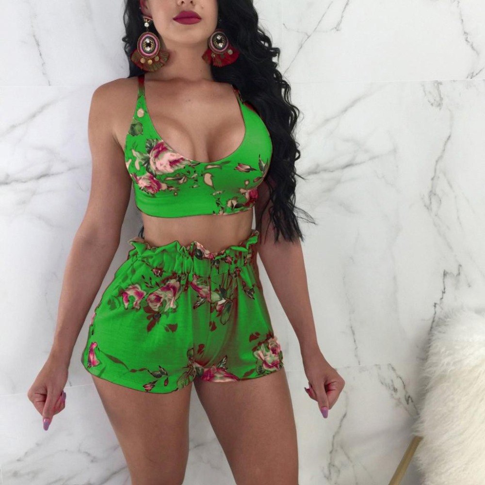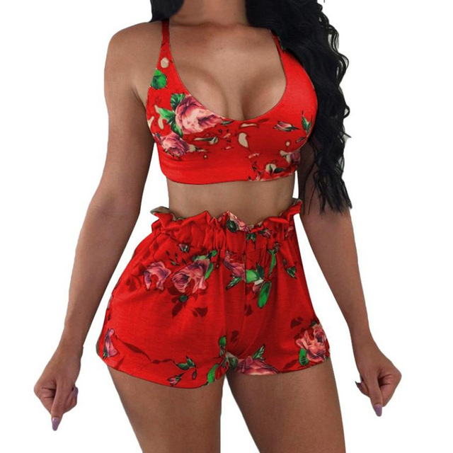 2Pcs Print Sport Short Pants Sets Sexy Print Sleeveless Bustier Top Wear Casual Suit
