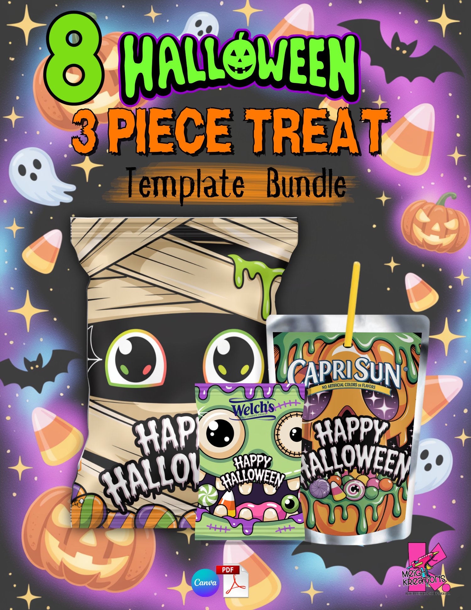 Get ready for spooky season with this 8-design Halloween Treat Template Bundle — perfect for creating coordinated party sets, classroom favors, or custom client orders!