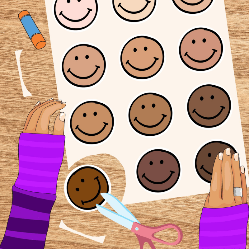 Happy Face stickers in diverse skin tones. Print on sticker paper, or you can print on regular paper and use a glue stick. Great for kids, classrooms, parties, planners, and so much more.