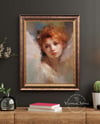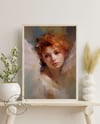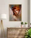 This digital oil painting portrays a cherubic angel in an impressionistic style, featuring thick and textured brushstrokes known as impasto. The painting skillfully captures a sense of elegance and grace and emanates an aura of innocence and purity, emphasizing the angel's divine nature.