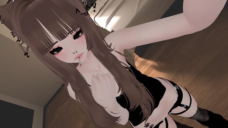 deleted 4 quest : choker, lashes, nails, belt, eyebrow/mouth pericings. ofc lowered textures. please feel free to make ur own quest version if mines doesnt satisfy u <3~