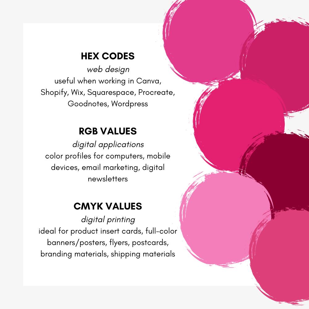 + Detailed Hex Codes, RGB, and CMYK values for each color