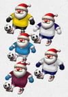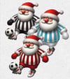 Football/Soccer Santas. 12 different coloured shirts. Separate background. 13 PNGs. Digital download. High quality PNGs. Sublimation, print.