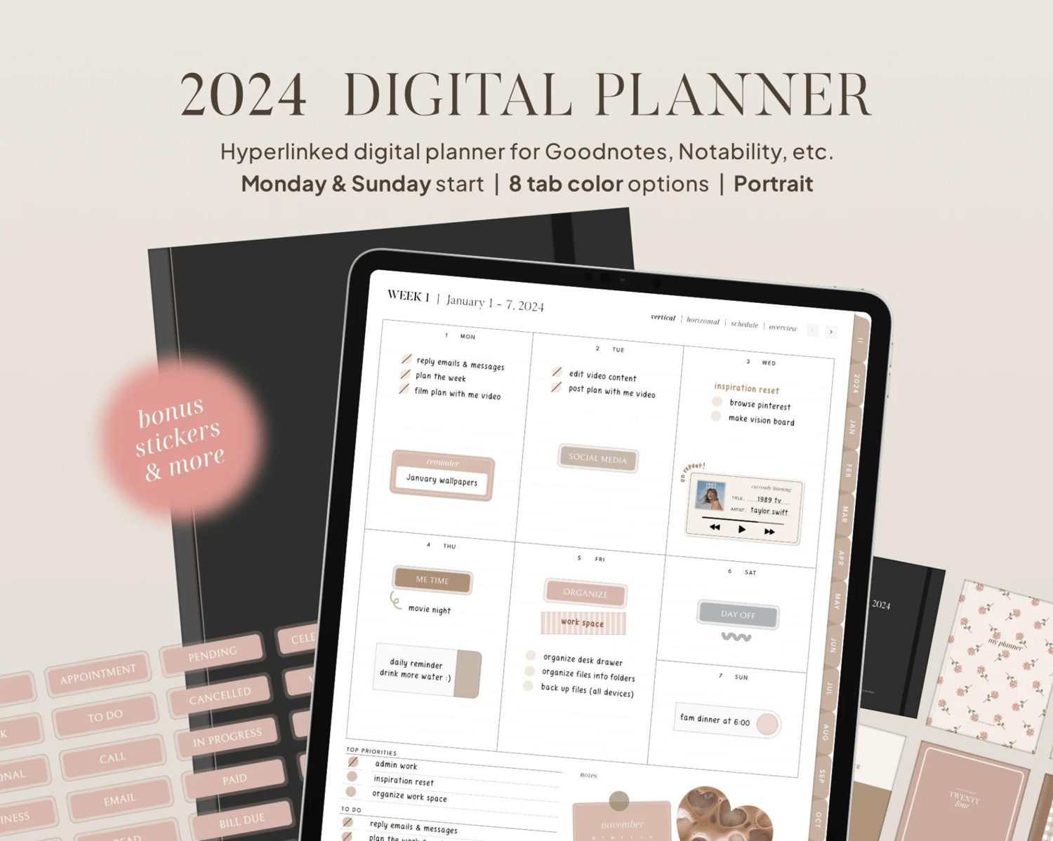Introducing the 2024 Digital Planner with newly refined & upgraded make it even better than before! Dated from January to December 2024.