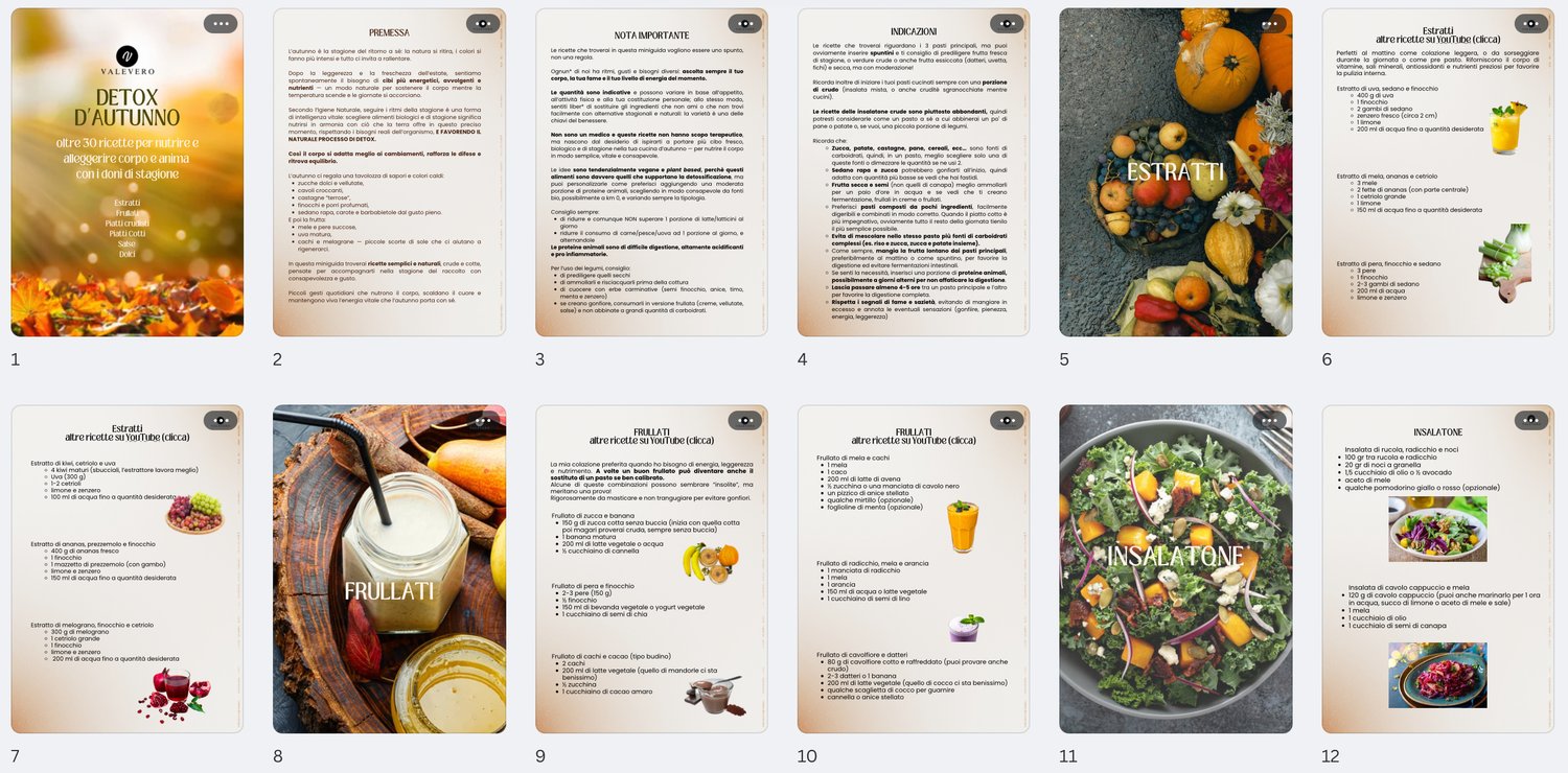 Troverai oltre 30 ricette semplici e gustose e con qualche “combinazione insolita” ma deliziosa: estratti, frullati, insalatone, piatti cotti, dolci e salse pensati per supportare il detox in modo dolce e naturale, secondo i principi dell’Igiene Naturale.