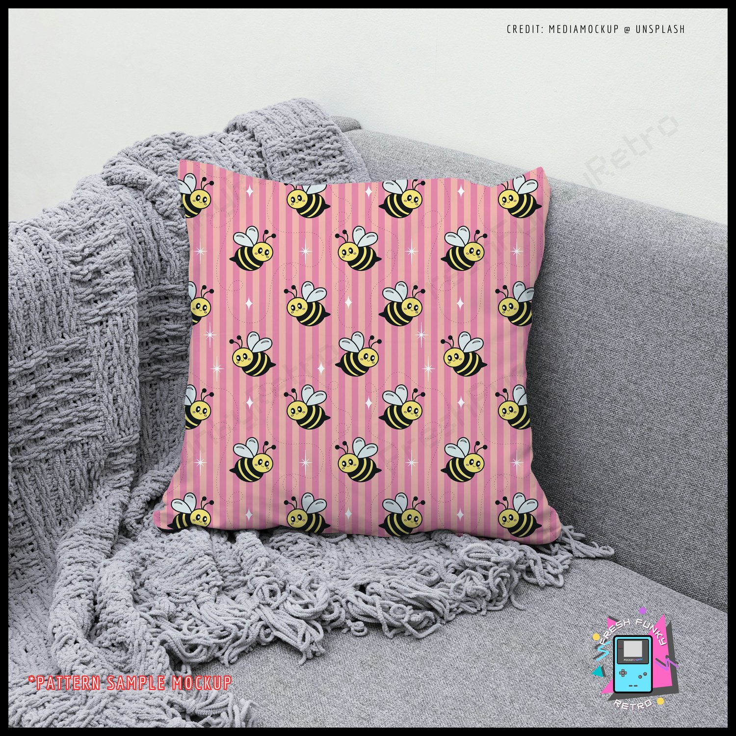 Cute Pink Bumblebee Seamless Pattern for Personal or Commercial Use, Pink Stripes Digital Paper | Instant Download