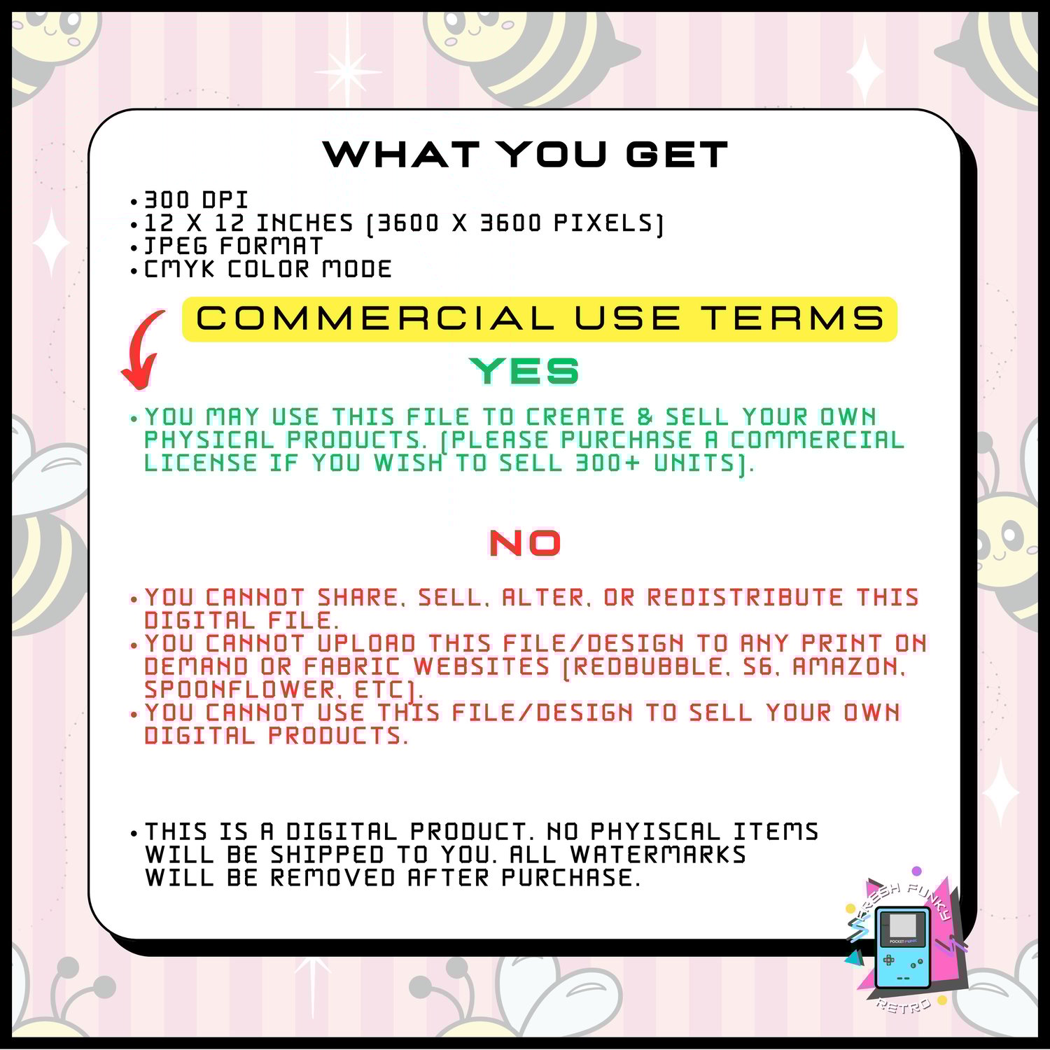 - You cannot upload this file/design to any print on demand or fabric websites (Redbubble, S6, Amazon, Spoonflower, etc).