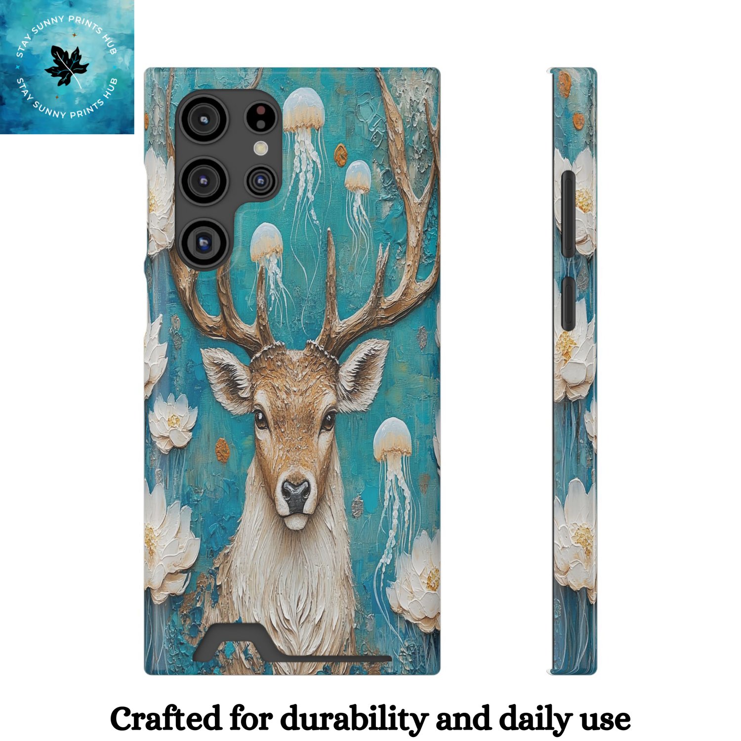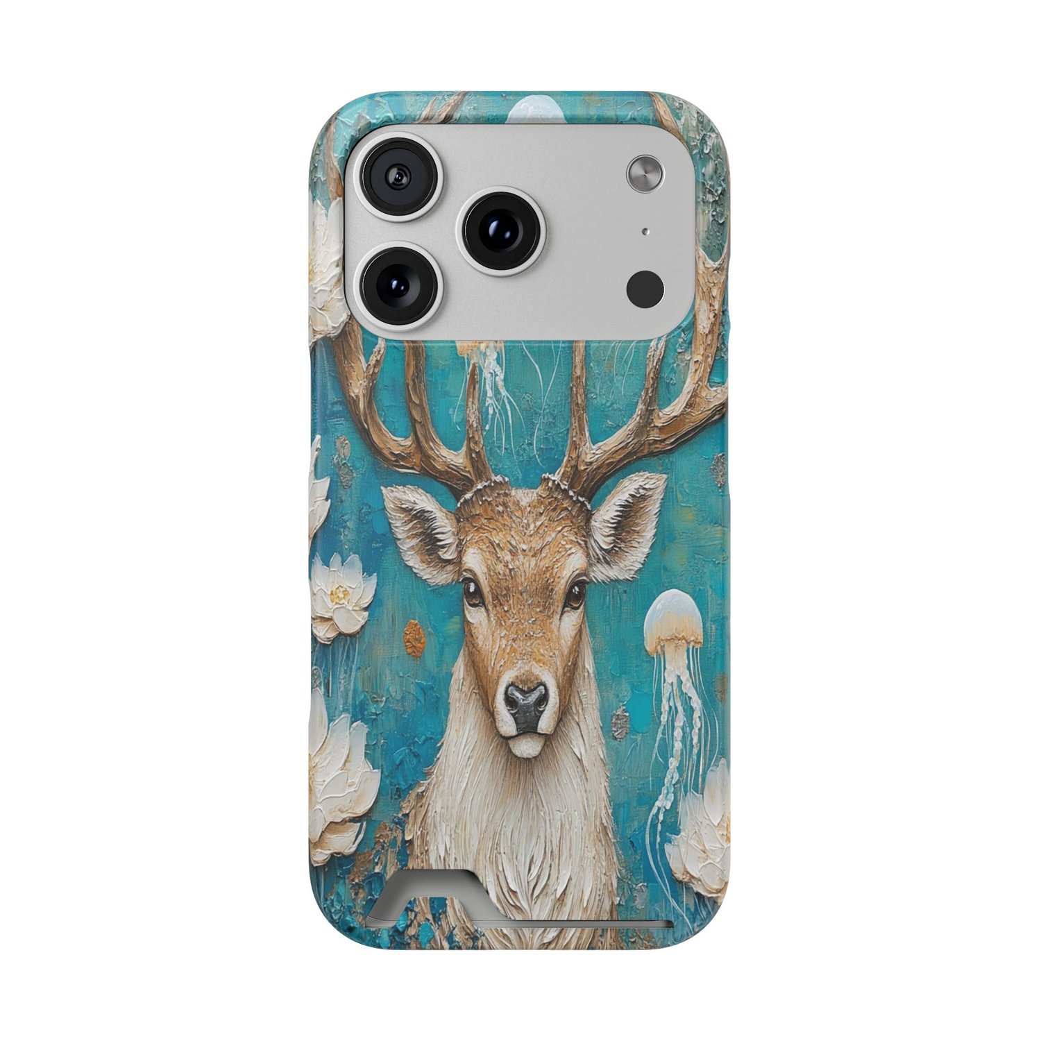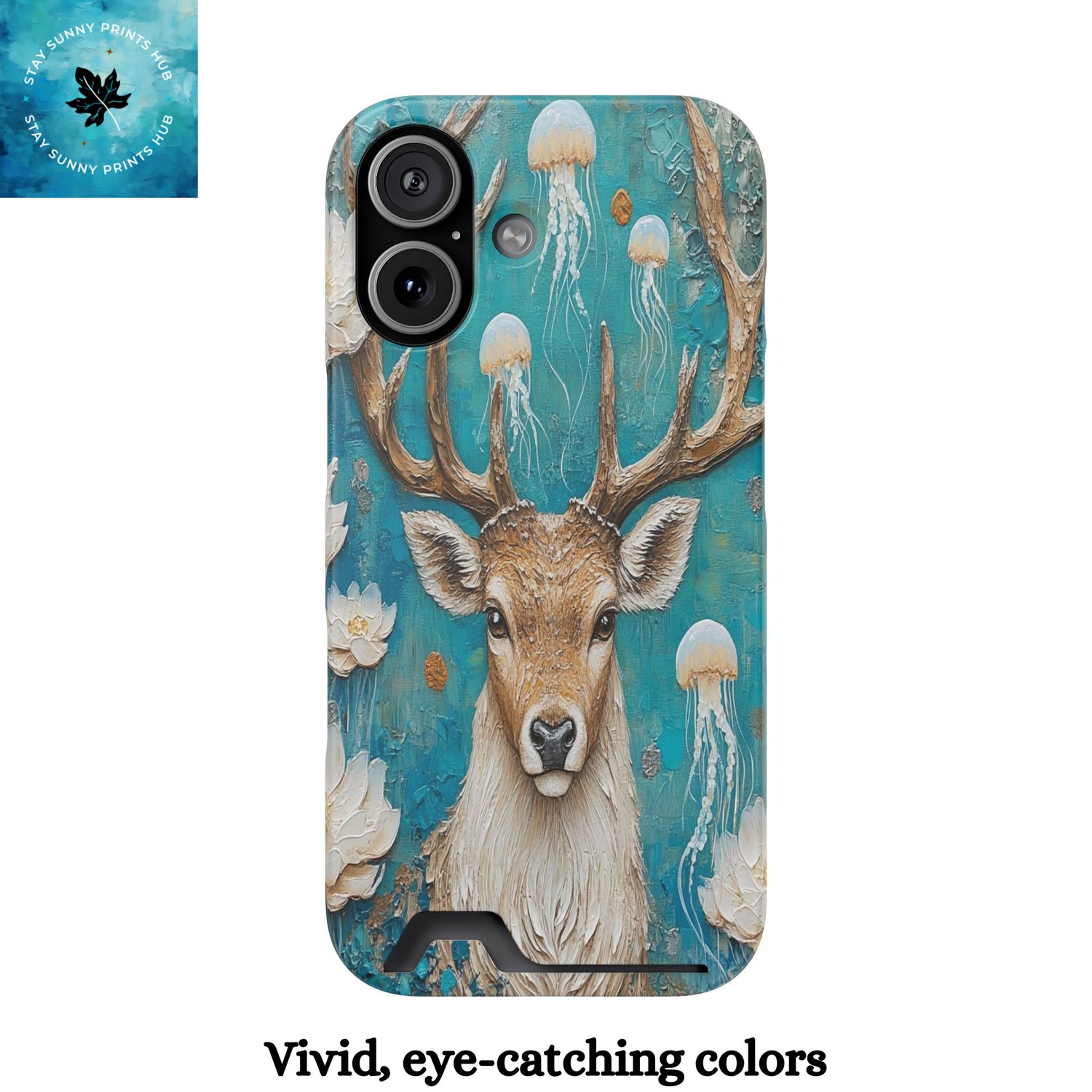 Turquoise Hangul features the majestic Kashmir Stag (Hangul) against a dreamy turquoise petals, mesh white, and jellyfish seafoam background. Illustrated in a whimsical, fantasy-inspired style, this artwork captures the stag’s elegance and mystical presence, making your phone a unique and enchanting accessory.