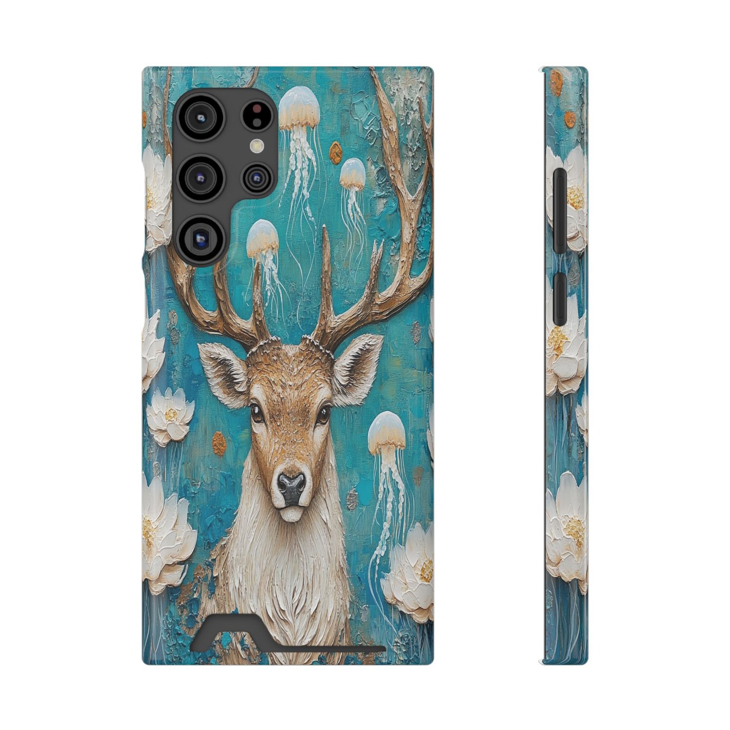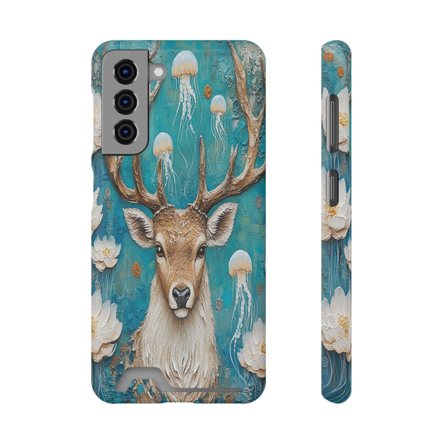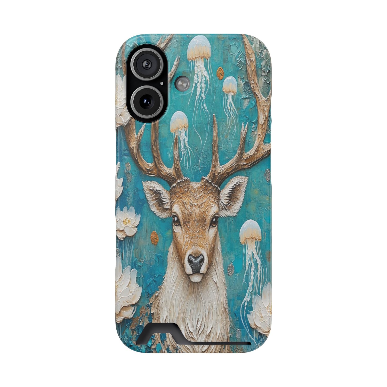 Turquoise Hangul features the majestic Kashmir Stag (Hangul) against a dreamy turquoise petals, mesh white, and jellyfish seafoam background. Illustrated in a whimsical, fantasy-inspired style, this artwork captures the stag’s elegance and mystical presence, making your phone a unique and enchanting accessory.