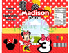 The Minnie Mouse editable party favor design and mockup for items such as water bottles, chips, Rice Krispies, Capri Sun, candy bars, Pringles, and boxes is an enchanting and stylish template set, perfect for adding a touch of Disney magic to any celebration. Each design features a delightful color palette of pinks, reds, whites, and blacks, capturing the charming and fashionable essence of Minnie Mouse. The water bottle labels, chip bags, Rice Krispies wrappers, Capri Sun pouches, candy bar covers, Pringles wraps, and favor boxes are adorned with adorable graphics such as Minnie’s smiling face, her signature bow, polka dots, and her iconic ears. Additional elements like hearts, stars, and playful patterns enhance the festive and whimsical feel, while customizable text areas allow for the inclusion of personalized messages, names, and event details.