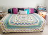 This pattern makes a 45cm mandala, 40” baby blanket or 80” Queen size blanket.