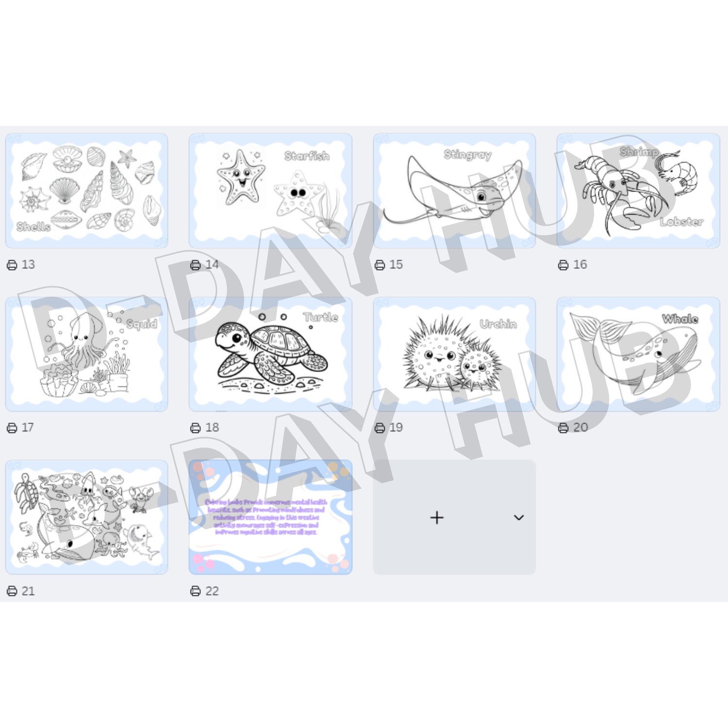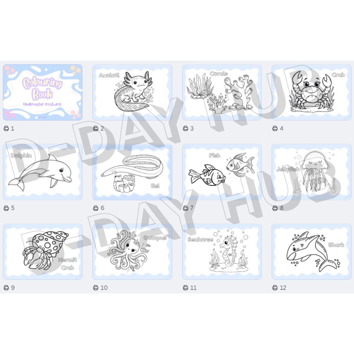 Dive into a vibrant adventure with the Underwater Creatures Coloring Book, a charming 22-page digital book (including front and back covers) designed for fun, relaxation, and learning! This book features 20 unique coloring pages filled with detailed, high-quality illustrations of diverse marine life, from tiny seahorses to massive whales. Each creature is clearly labeled with its corresponding name, making it a perfect educational tool as well. Ready for digital coloring apps or easy printing at home, this set is a beautiful way to explore the mysterious world beneath the ocean and bring it to life with your favorite colors.
