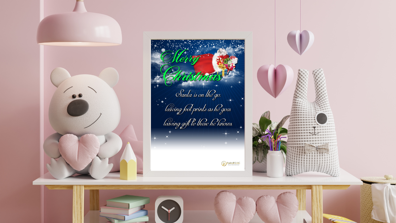 Bring the holiday cheer to your home with our "Merry Christmas Footprints" wall art. Santa Claus is on the go, leaving footprints as he delivers gifts to those he knows. Get this digital poster now and make your home more festive this Christmas season.