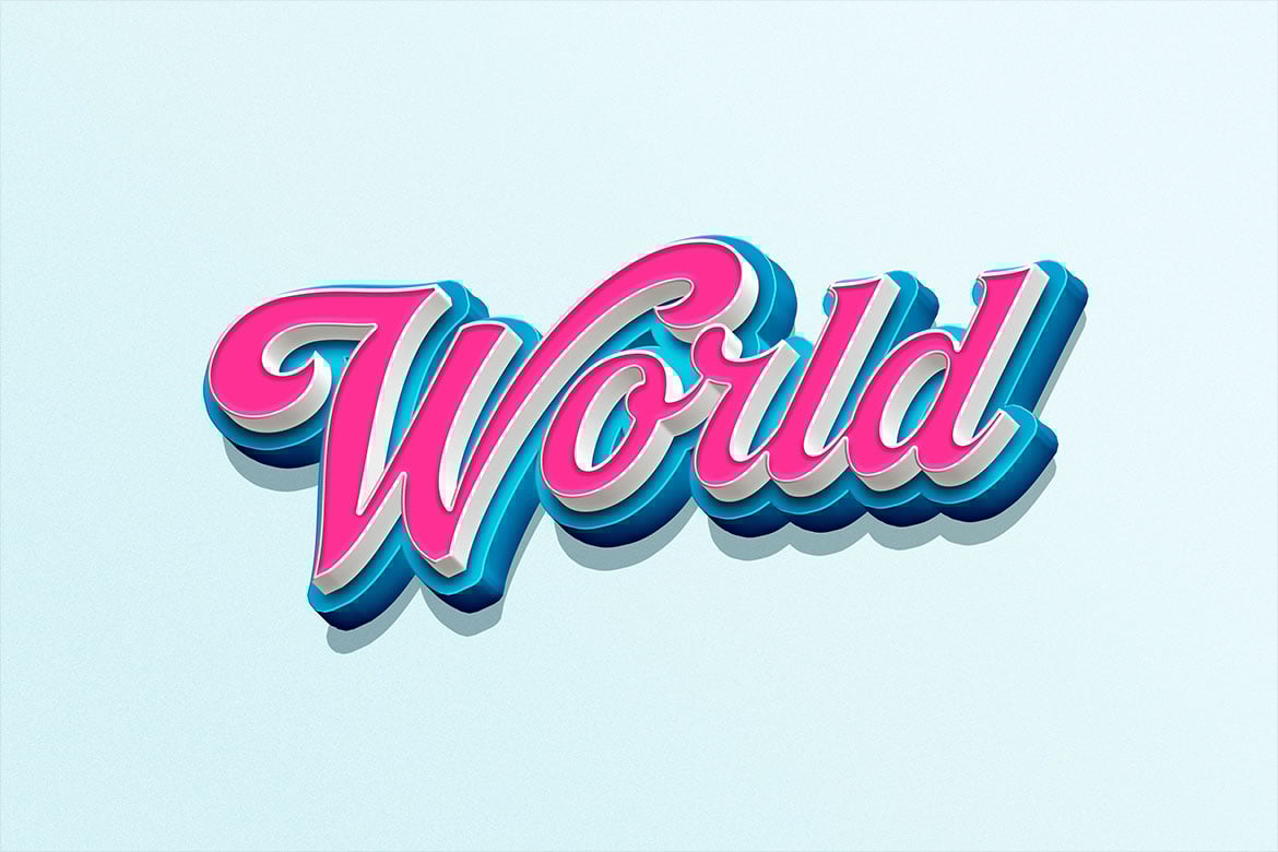 Features a vibrant 3D retro style with a playful and dynamic appearance. Designed with bold, cursive typography in bright pink as the main color, accented by a white inner border and a teal-blue shadow layer that creates a strong sense of depth and dimension.