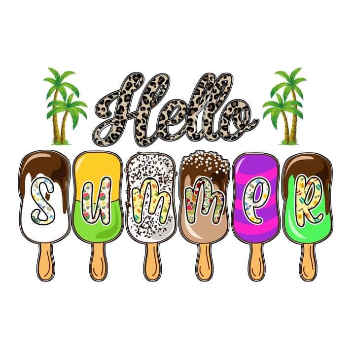 Hello Summer Popsicle palm tree design PNG Sublimation or Print N Cut Design