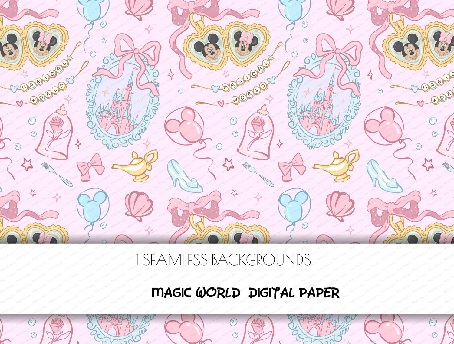 Mickey & Minnie Mouse locket Digital Paper, Magic Kingdom Seamless Patterns 5