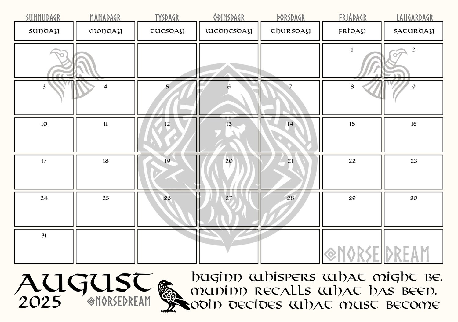 Free Printable August 2025 Calendar – Norse-Inspired Design