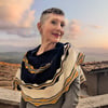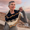 Battigia is a crescent shawl worked sideways that plays with curves and short row colorworks in a way that reminds me of the waves movement on a shoreline (battigia in Italian).