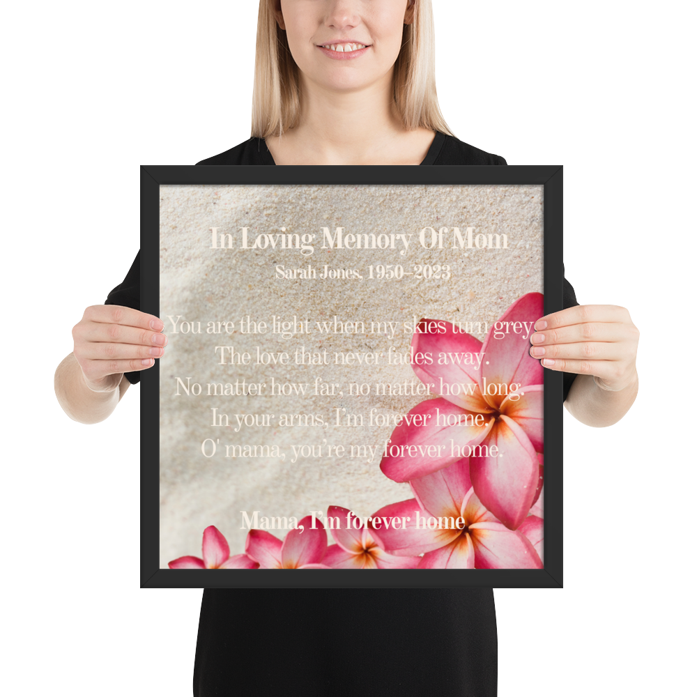 Personalized Memorial Wall Art for Mom — Forever My Home Lyrics Print, In Loving Memory Gift, Custom Name & Dates