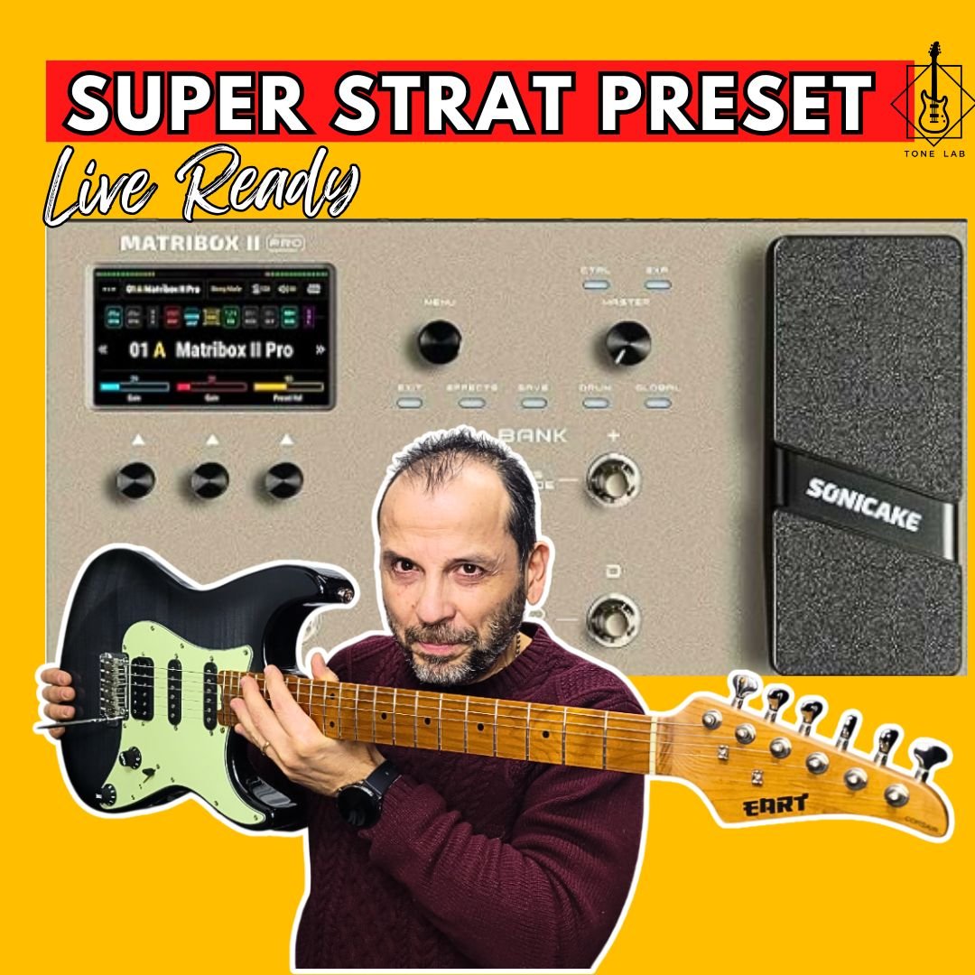 Super Strat Preset per Matribox II pro. Ottimizzato per chitarre HSS 4 preset dal Clean in stile '80 al Lead più spinto.