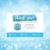 With its eye-catching blue glitter design, this card is sure to make a lasting impression on anyone who receives it. Whether you're thanking customers or clients, our card is the perfect way to show your appreciation. It also helps to remind your customers to leave you a five star review.