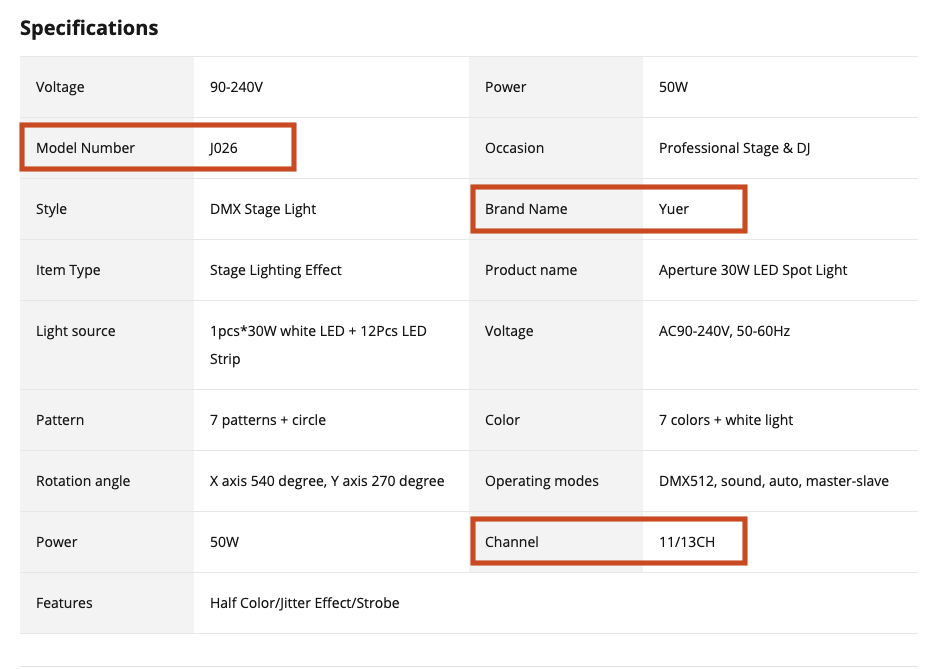 Librería para Freestyler DMX del Cabezal Móvil "J026" de Yuer ( Led Spot 30w 11/13CH Con Aro Smd ).