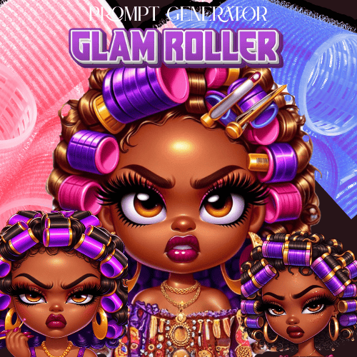 The Glam Roller Prompt Generator lets you build ultra-detailed, glossy, sass-filled beauty portraits in seconds. Think big lashes. Dramatic brows. Glossy lips. Colorful rollers. Main character energy.