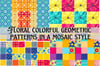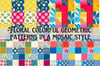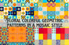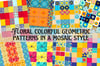 Floral colorful geometric patterns in a mosaic style, Abstract colorful doodle patterns in a mosaic style. Floral and Polka Background, Colorful floral doodle digital paper, Modern floral design digital paper, colorful Background.