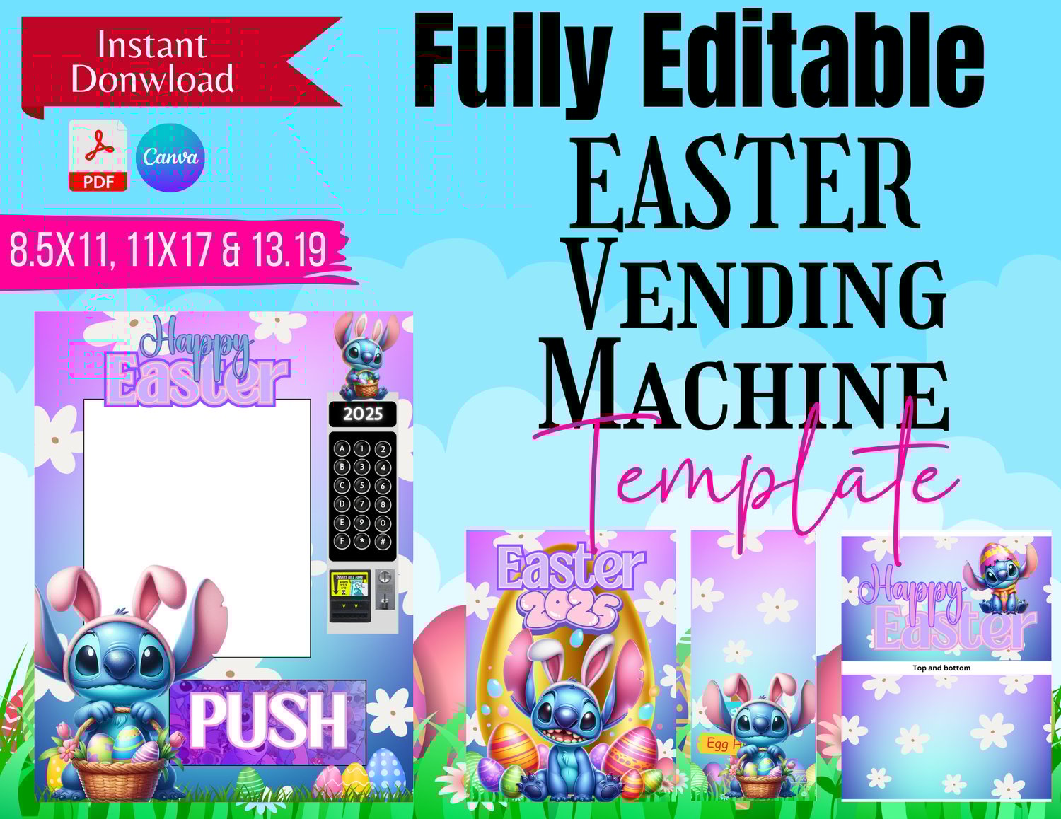 FULLY EDITABLE- Easter Themed Vending Machine- 3 sizes- Canva & PDF Links