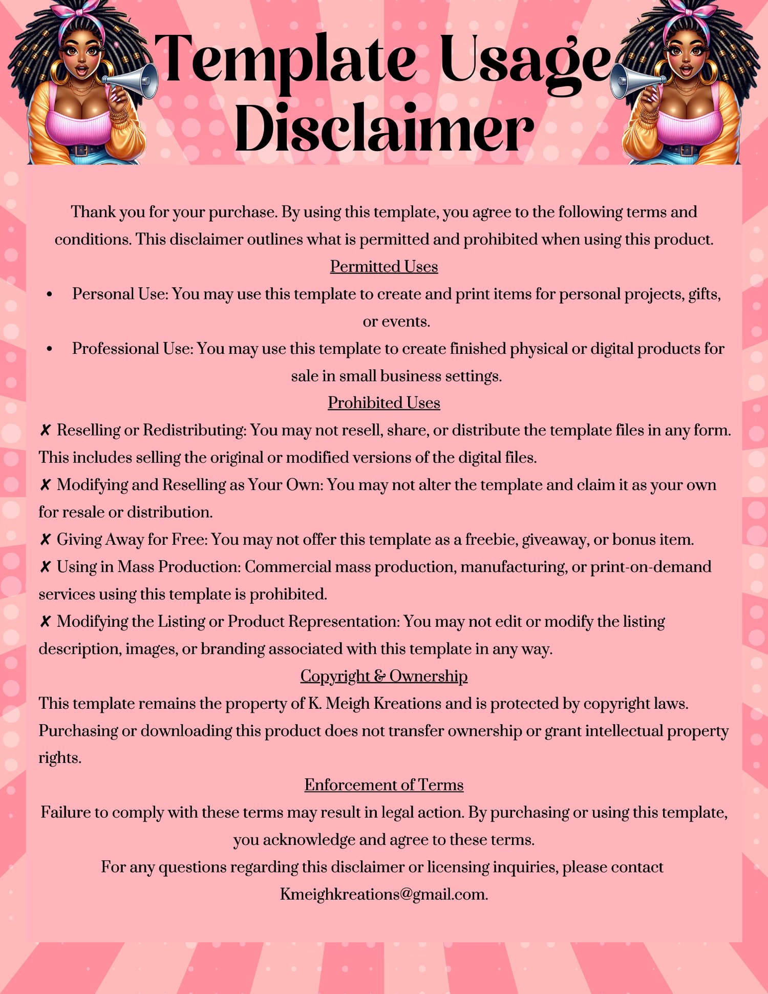 This template is for personal and professional use only. You may use it to create finished products for personal projects or small business sales. However, you may not resell, share, or redistribute the digital files in any way. Modifications to this listing, including altering images or descriptions, are not permitted.