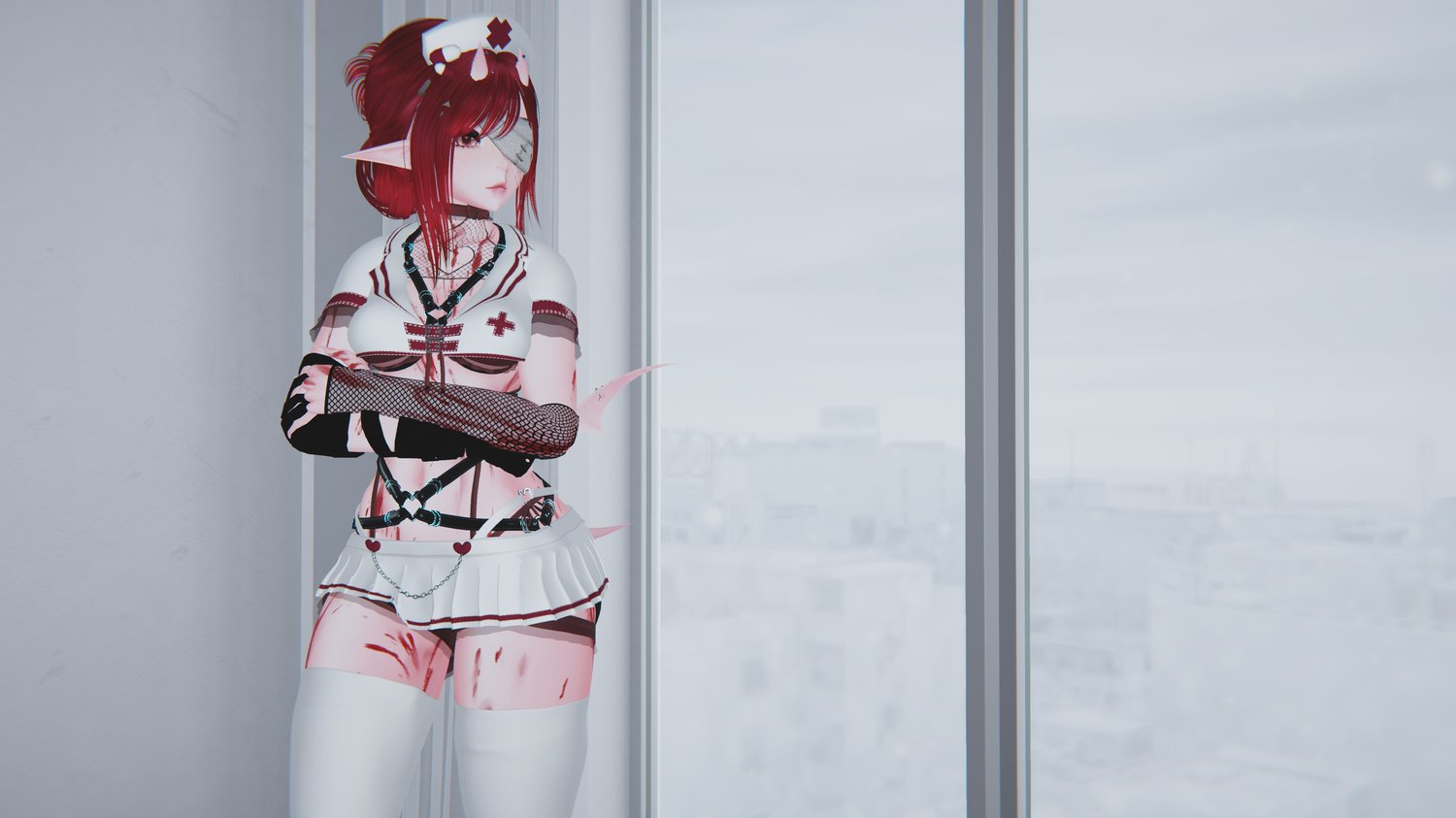 ⤿ Accessories : Arm Wraps, Fishnets, Garter, Harness, Nurse Hat, Pill Hair Clips, Thigh Highs, Syringes, Head Wrap