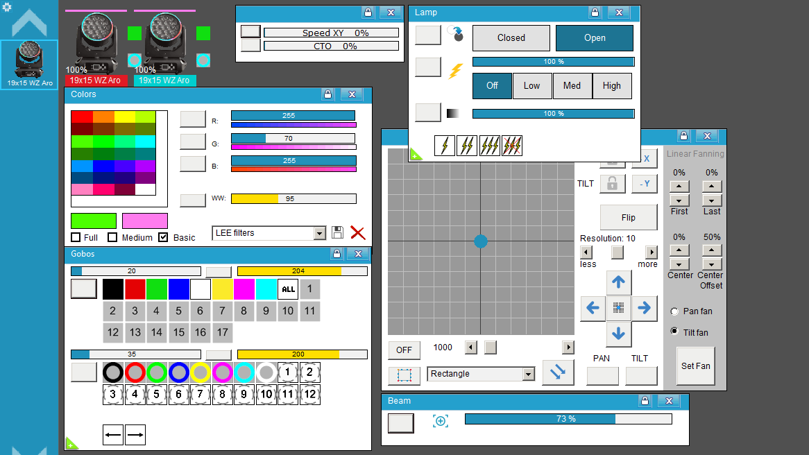 Librería para Freestyler DMX del Cabezal "19x15w Wash Zoom" con Aro Led, de Foowei ( 21-29CH ALY-BEAM19B )