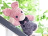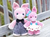 • For Tiny Piggy: Bernat Baby Velvet Medium weight (4); Qty: 100 yds (92 m) of Pink Mist for piggy, 50 yds (46 m) of Vapor Gray or Blissful Greige for clothing, a small amount of Pink Dusk for snout & any color for bow