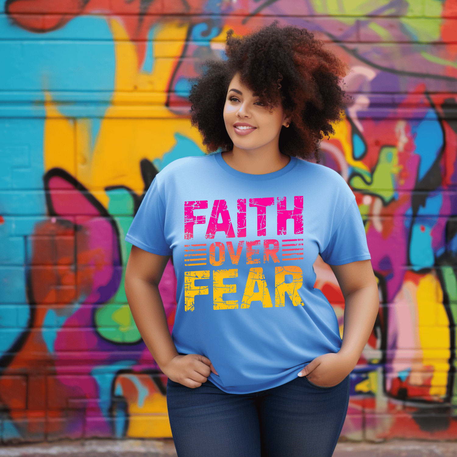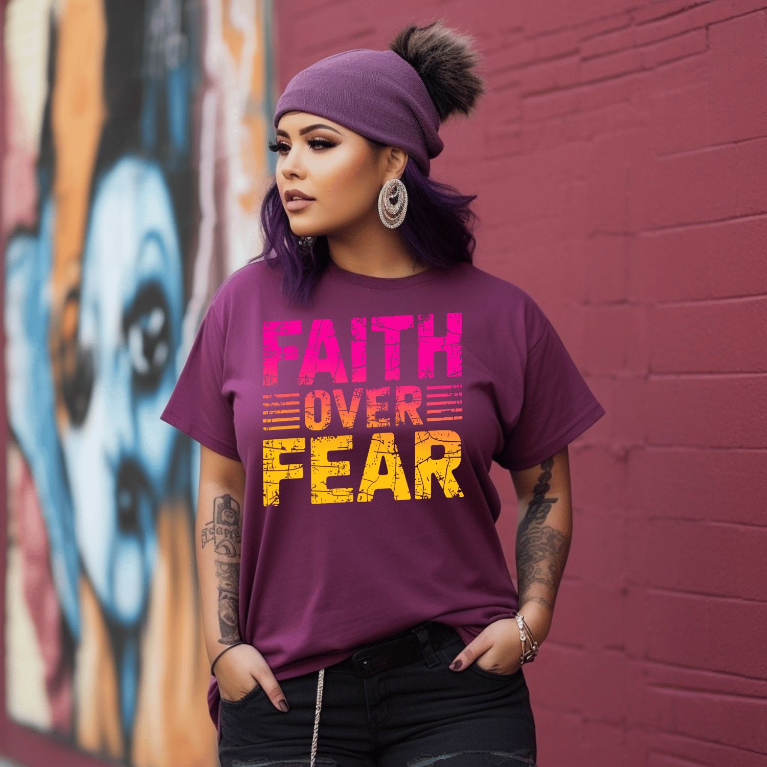 Faith Over Fear PNG Ombre | Distressed Christian Sublimation Design | Inspirational Faith Quote | Instant Download