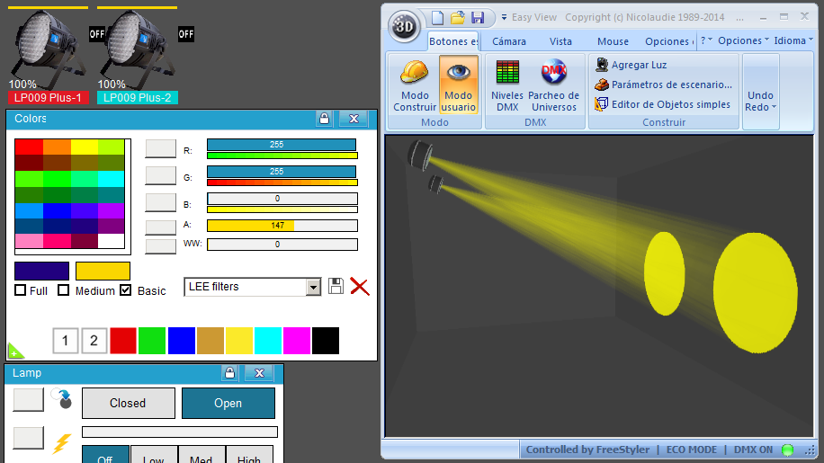 Esta Librería SSL2 está optimizada para trabajar con Magic 3d Easy View. Es decir para ver una representación 3D de las secuencias que estemos realizando con Freestyler, QLC+ o cualquier otro soft que se conecte con Magic 3d.