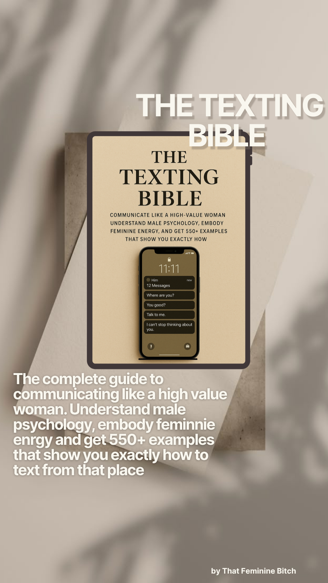 The complete guide to communicating like a high-value woman. Understand male psychology, embody feminine energy, and get 550+ examples that show you exactly how to text from that place.