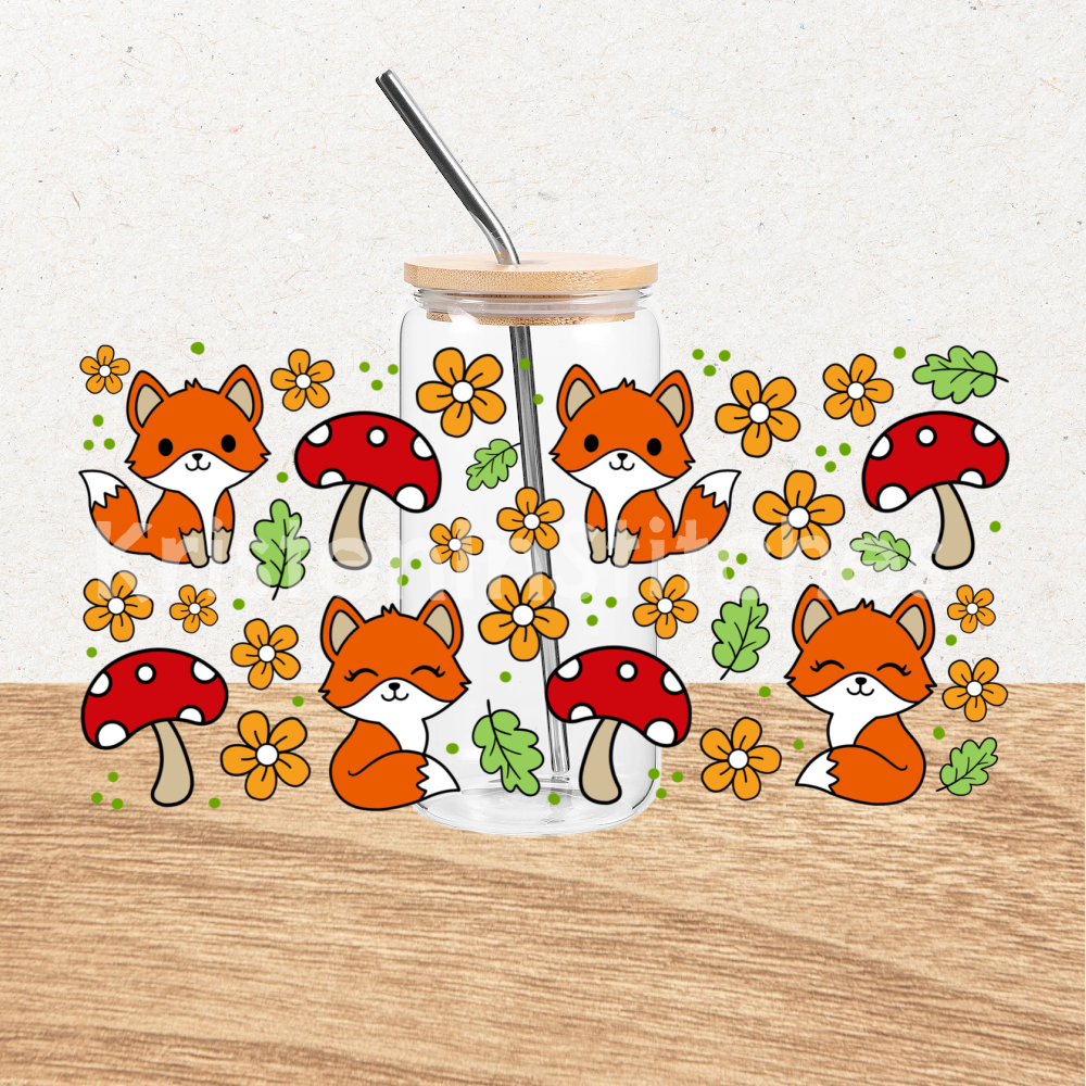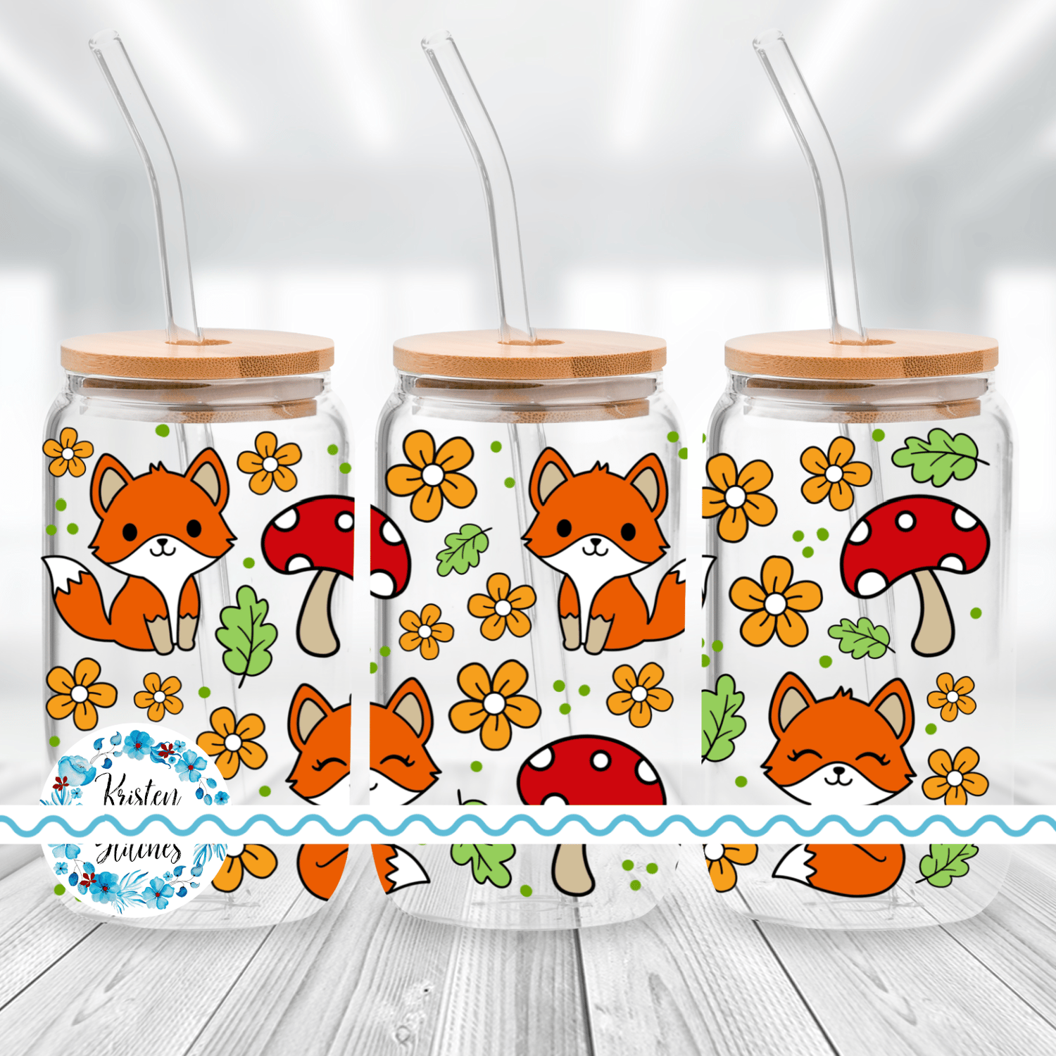Fall Fox 16 oz Glass Can Wrap Transparent PNG, Sweet Woodland Animals