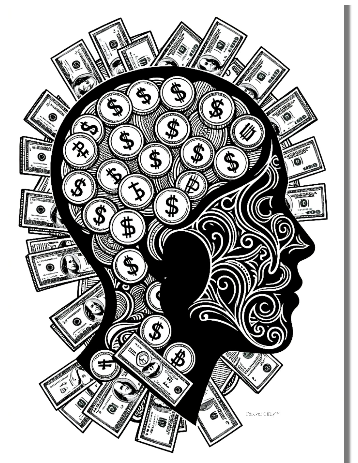 Inside, you’ll find detailed head-silhouette mandala designs paired with focused abundance affirmations. These pages are created for those who enjoy fine-line coloring, bold ink work, or adding their own personal details. They are meant to be used — not just looked at.