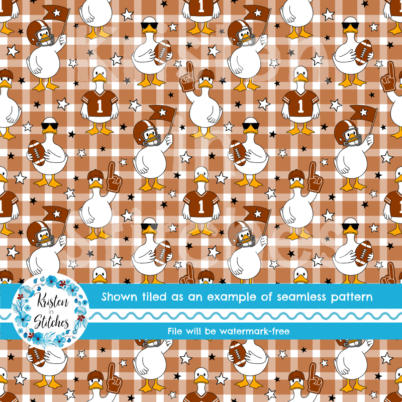 Silly Goose Football Team Spirit Seamless Pattern, Brown