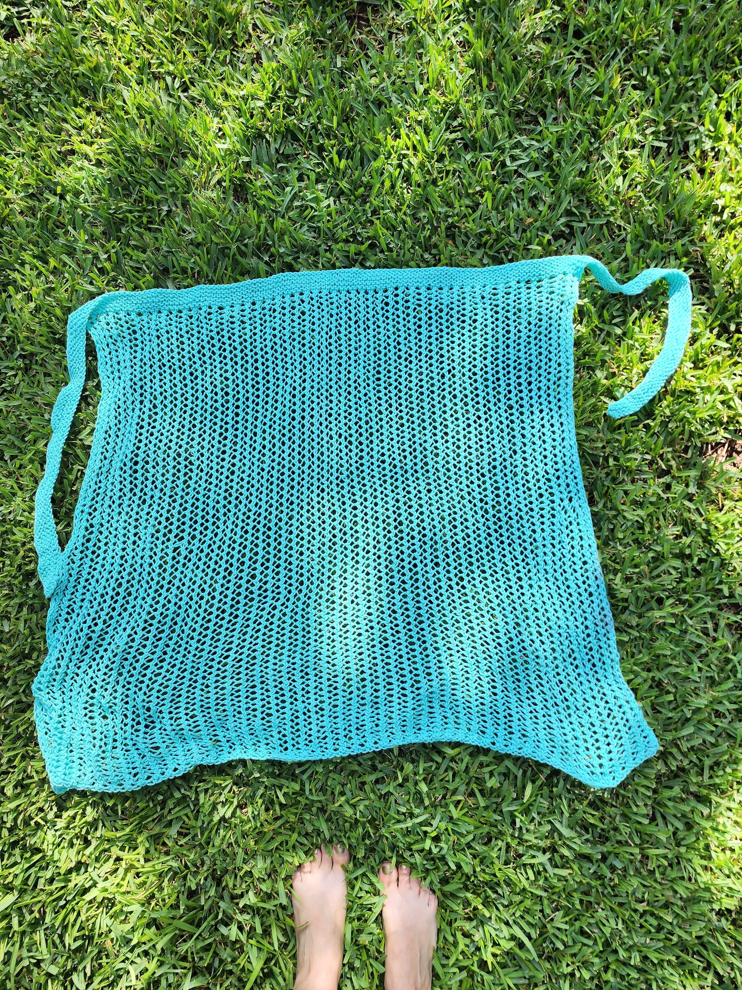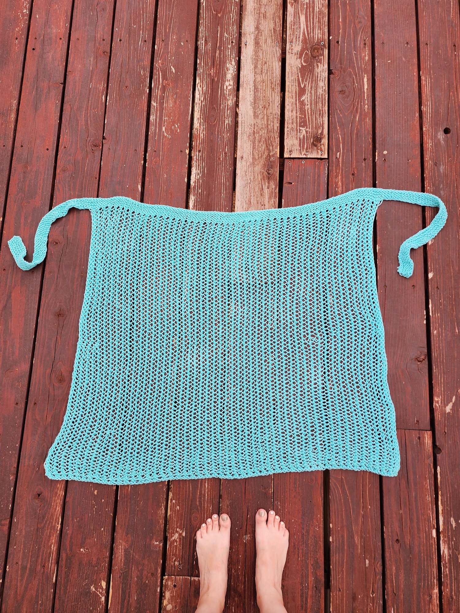 This is a beach pareo (or a wrap, if you want) and it’s meant to be knitted from breathing cotton threads, bottom-up, flat, featuring a stunning mesh pattern. It will wrap you gently and won’t suffocate your body while resting on the beach or sipping cocktails near the pool. The pareo is of a rectangular shape and has a built in belt. It could be worn around your thighs or your chest - as you feel it at the moment. This is a relaxed, adjustable pattern which is obtainable even for the very beginners. The pattern contains clear, full instructions and is supplied with multiple links on captioned video tutorials.
