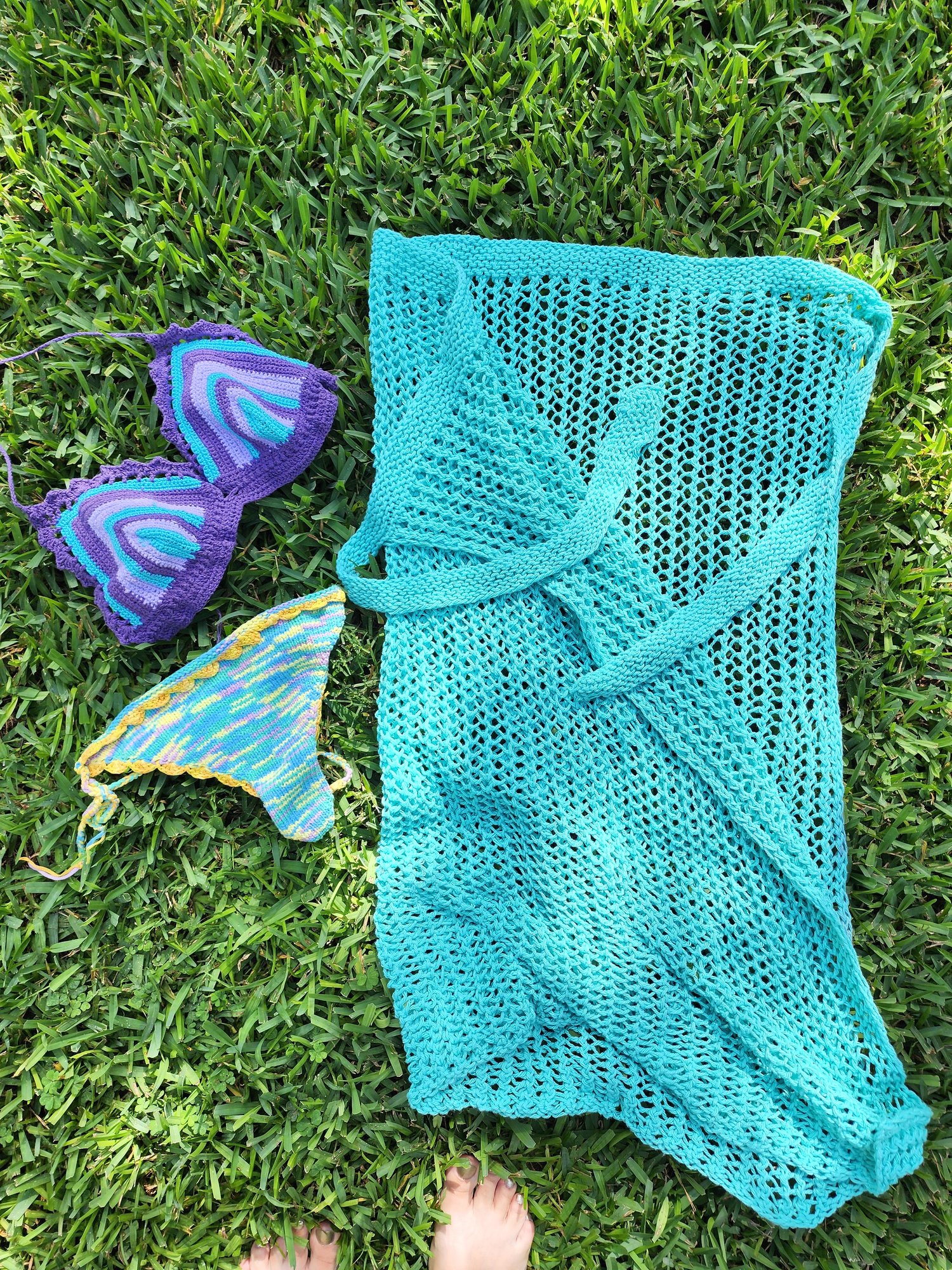The pattern is written for 7 basic sizes, but it could be easily adjusted to your needs. Just measure the most prominent part of your body which is going to be wrapped with this pareo, and add 10 cm/4” to this number. Then think how long you want it, or you can always try it on while knitting it.