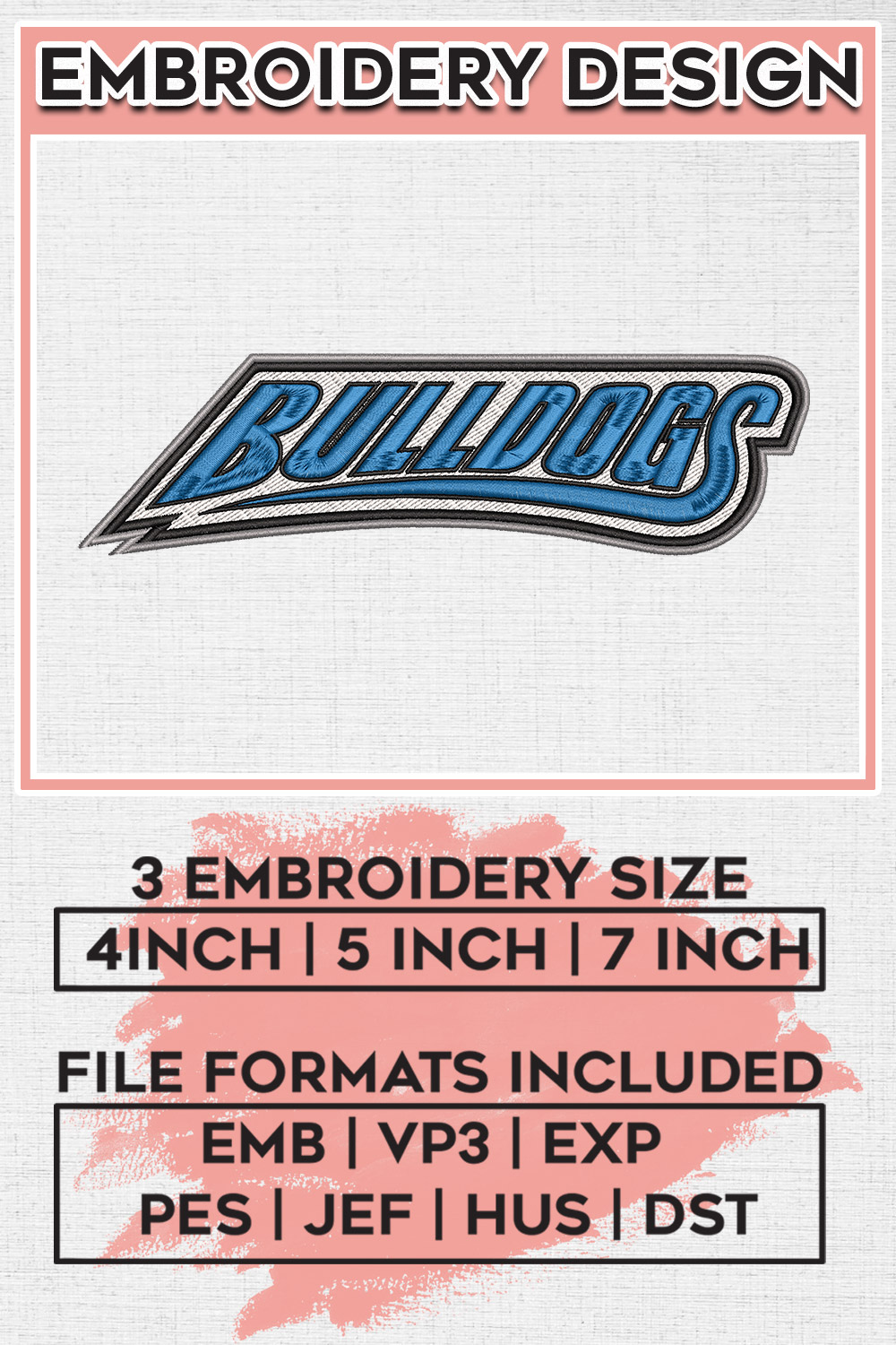 NCAA Bulldogs Football Team Writing Logo Embroidery Files, NCAA UNC Asheville Bulldogs Team Embroidery, NCAA College Football Teams, UNC Asheville Team Emroidery, 3 sizes, Machine embroidery designs, Digital Down