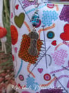 Made with 100% cotton fabric, stabilizers, zipper and a handmade zipper pull with yarn skein charm.